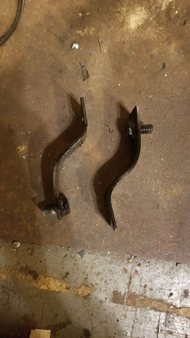Also made these for the shift bracket on the transfer case. Makes up for the body lift and the trans being pushed back from original location. Just 1 1/2" flat kind of dead eyed the bend to give the difference in elevation I wanted. Checked fitment then drilled two holes in each. One end I dropped in a bolt then welded the head just to make it easier when bolting the shift bracket to it.