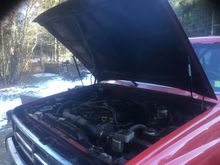 the pump doesn't need to be disconnected from any hoses, just removed from the mounting bracket. with it and the distributor pulled, the alternator can be removed from the topside, rather than pulling the lower radiator hose (and draining coolant). i find this method preferable, anyway.